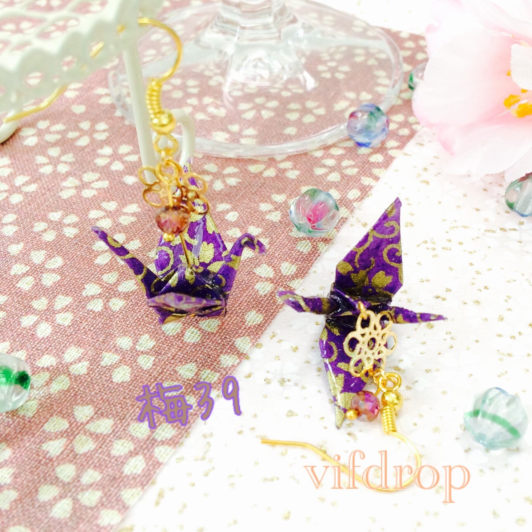 ✿ピアスパーツ・金具カラー・折り鶴サイズの変更可能✿