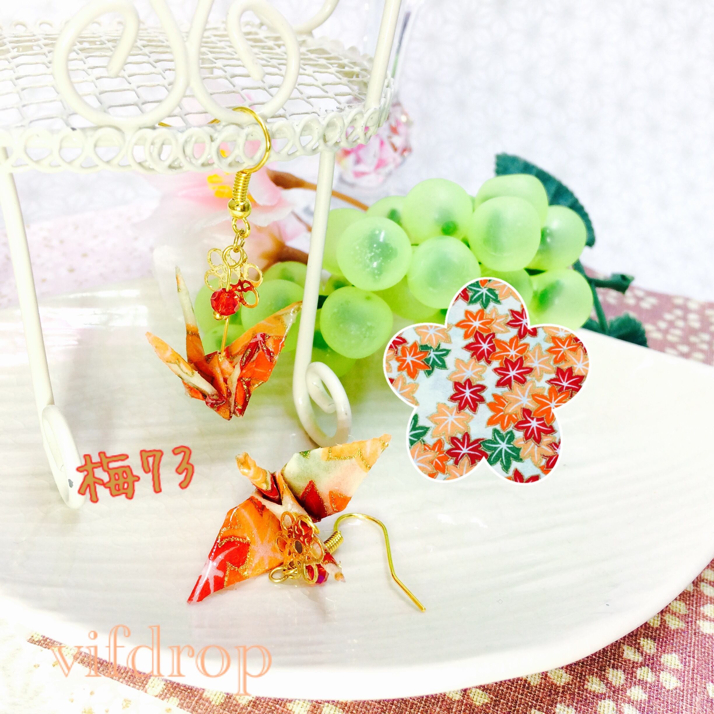 ✿ピアスパーツ・金具カラー・折り鶴サイズの変更可能✿