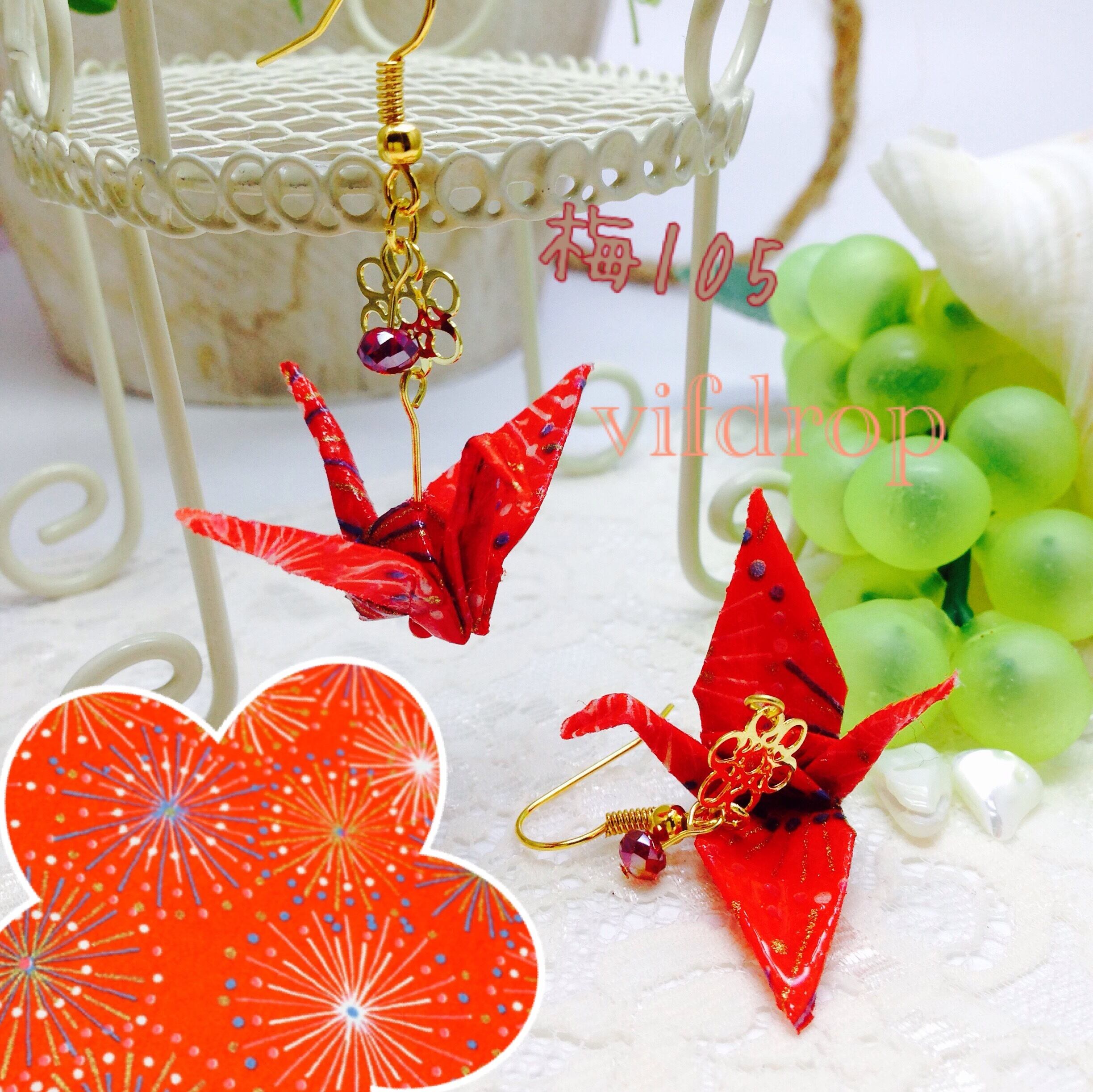 ✿ピアスパーツ・金具カラー・折り鶴サイズの変更可能✿