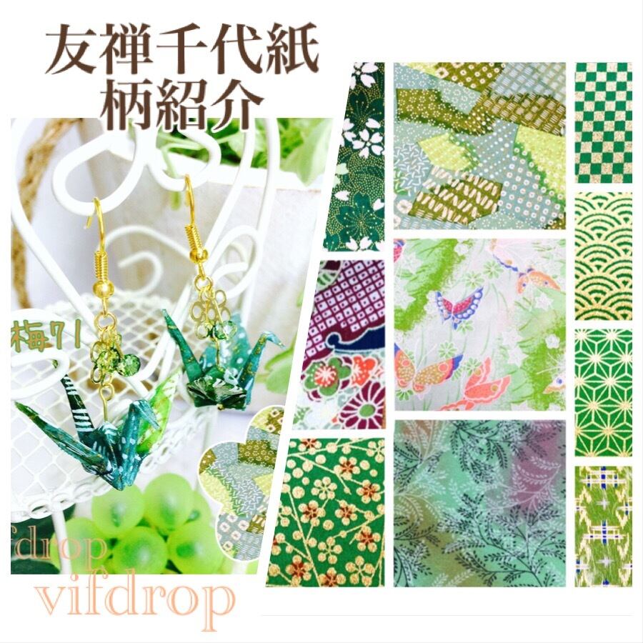 【緑系 全13種】友禅千代紙柄紹介 折り鶴ピアス イヤリング 簪など
